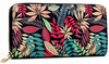 Duży portfel damski brązowy w kwiaty, pionowy - skóra ekologiczna