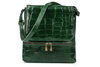 Włoska skórzana torebka damska listonoszka ciemnozielona. Wzór CROCO.