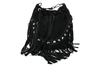 Modna Skórzana Zamszowa torebka worek w stylu boho z frędzlami Czarna