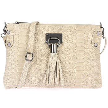 Beżowa torebka na telefon - mini listonoszka z ekoskóry
