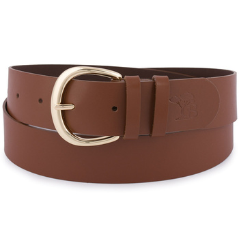 Połyskujący, skórzany pasek damski ze złotą, okrągłą klamrą — Rovicky