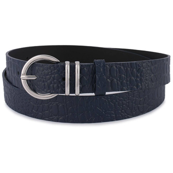 Ciekawy skórzany pasek damski ze srebrną klamrą, wzór gadziej skóry — Rovicky