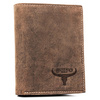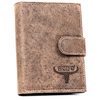 Brązowy portfel męski skórzany Pionowy Na Zatrzask. RFID.
