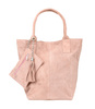 Duża torebka damska A4 na ramię - różowa skóra zamszowa, na suwak.