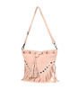 Skórzana Zamszowa torebka worek w stylu boho z frędzlami Pudrowo Różowa