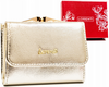 Poręczny, złoty damski portfel. Skóra ekologiczna. Zatrzask. RFID.