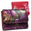 MIni portmonetka fioletowa w kwiaty - skóra naturalna