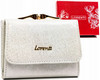 Klasyczny srebrny portfel damski na zatrzask i suwak Lorenti
