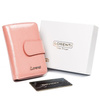 Lekki pudrowo RÓŻOWY portfel damski ze skóry koziej RFID