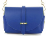 Mała skórzana torebka damska chabrowa kopertówka na łańcuszku