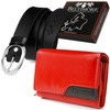 Duży skórzany damski portfel czerwony. Brelok do kluczy. Zestaw.