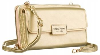 Mini torebka na telefon - ZŁOTA damska kopertówka eko skóra.