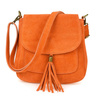 Skórzana Musztardowa Zamszowa torebka worek w stylu boho z frędzlami