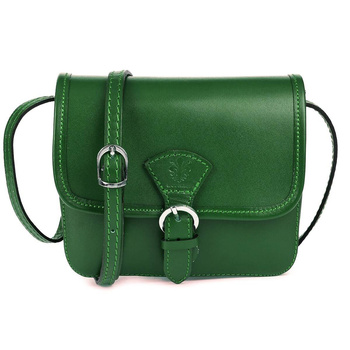 Zgrabna ciemnozielona mała torebka skórzana włoska. Regulowany pasek.