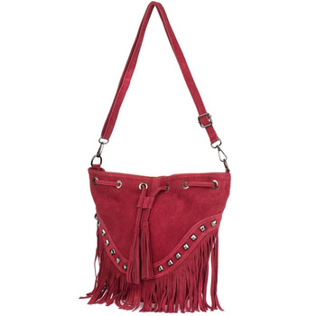 Bordowa Damska Torebka Worek Skóra Zamsz Frędzle Włoska Boho