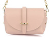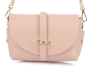 Mała skórzana torebka damska kopertówka na łańcuszku. Pudrowa różowa