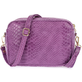 Fioletowa torebka damska Mała skórzana listonoszka kuferek croco