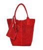 Duża torebka worek A4 suwak skóra zamsz czerwona
