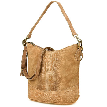 Skórzana Duża Torebka Damska Ze Skóry Zamszowej Camelowa