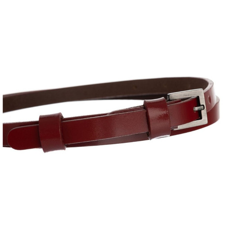 - Delikatny, skórzany pasek w kolorze czerwonym, o szerokości 1 cm, który uzupełni Twoją stylizację subtelnym akcentem.
