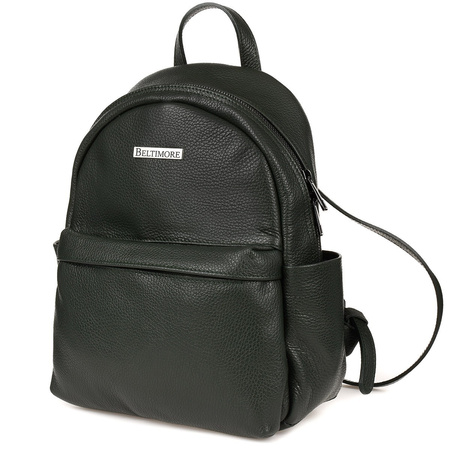 Zgrabny, ciemnozielony plecak damski niewielkich rozmiarów na zamek błyskawiczny, uszyty ze skóry naturalnej - Beltimore