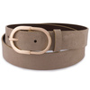 Zamszowy pasek damski skórzany ze złotą klamrą JASNOBRĄZOWY.