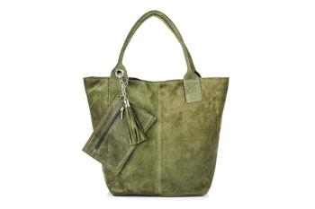 Duża torebka worek A4 zamszowa oliwkowa shopperka