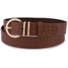 Beżowy pasek damski skórzany ze srebrną okrągłą klamrą