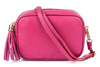 Różowa mała włoska skórzana listonoszka z frędzlem