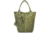 Skórzana Duża Torebka Damska Ze Skóry Zamszowej Oliwkowa Zielona